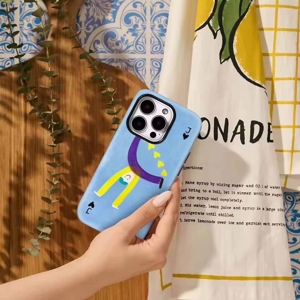 ブルーの背景が爽やかで、持つだけでセンスを感じる1枚。