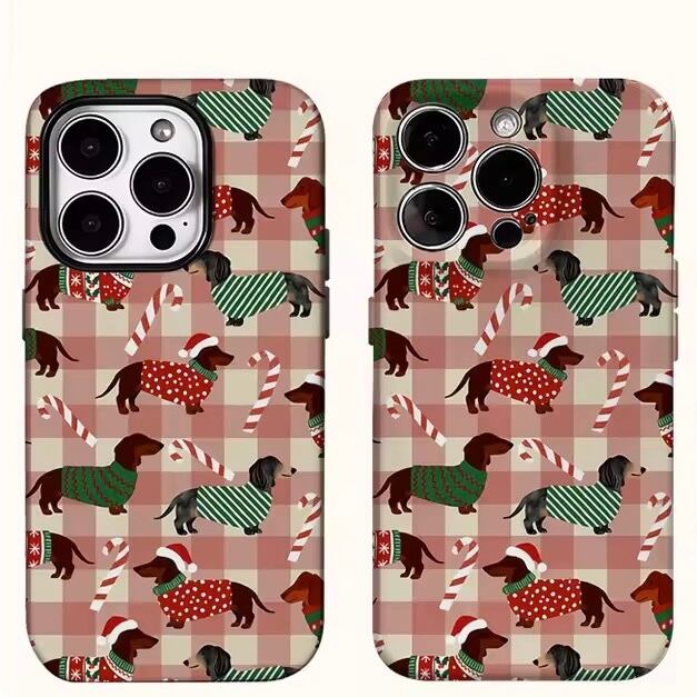 クリスマスダックス × チェック iPhoneケース(iphone12-iphone16)0038