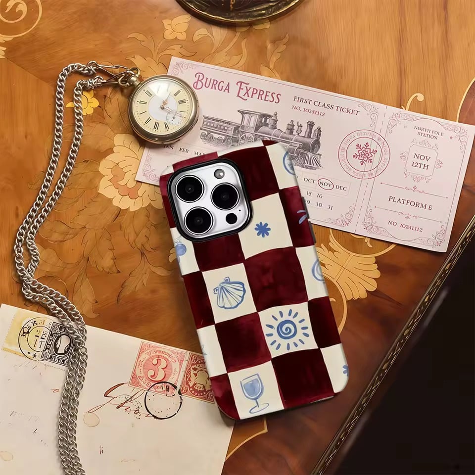 レッドチェック×カフェイラスト iPhoneケース(iphone12-17対応)0045