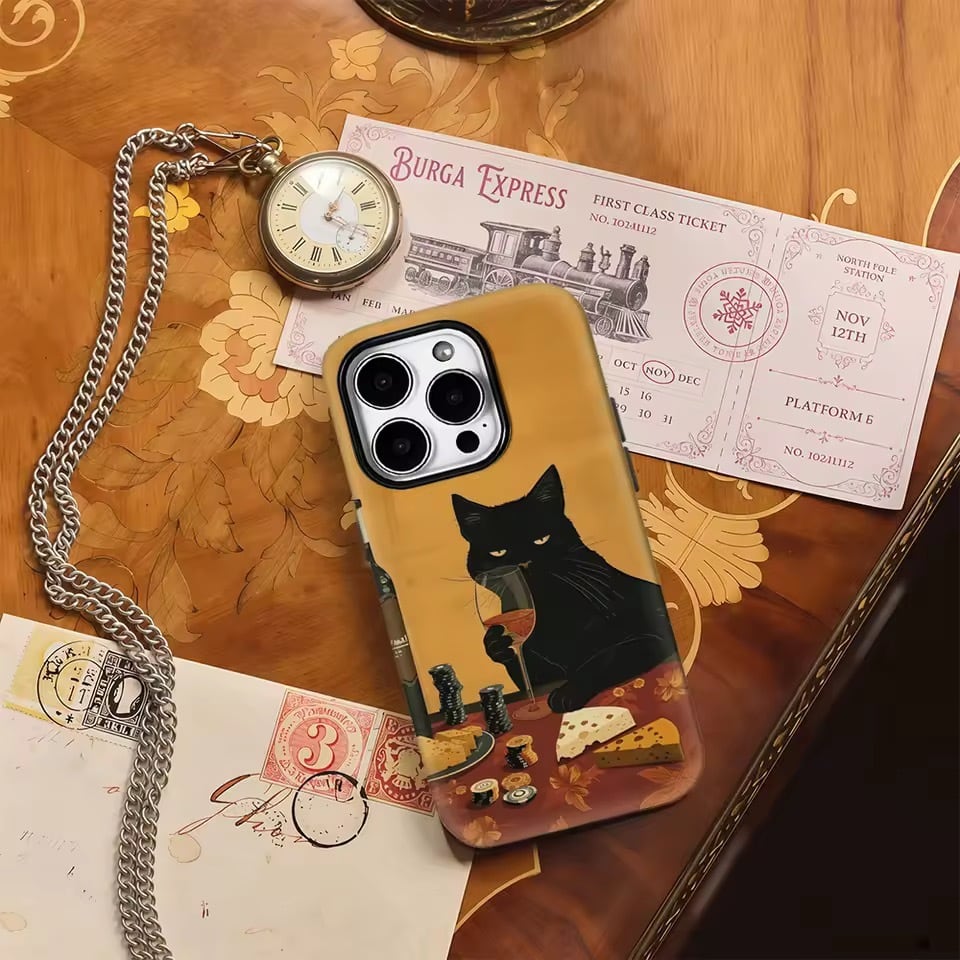 ブラックキャット・ワインナイト iPhoneケース(iphone12-17対応)0058