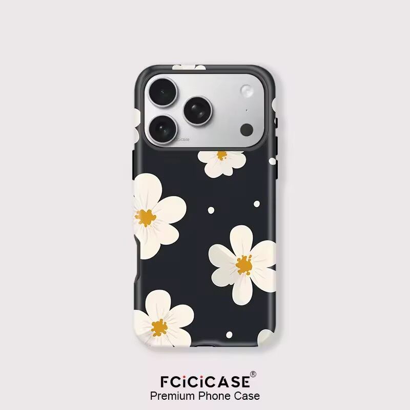 ブラックベース 白花ドット iPhoneケース(iphone12-17対応)0136