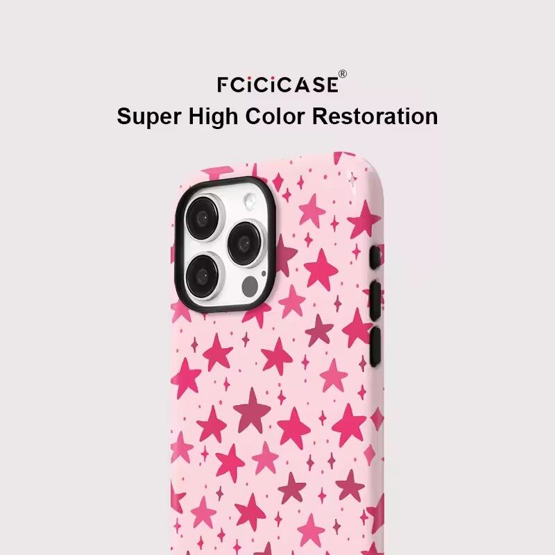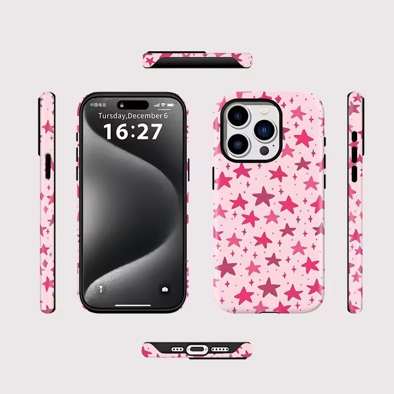 大小の星を散りばめた、ポップでときめくピンクデザイン。