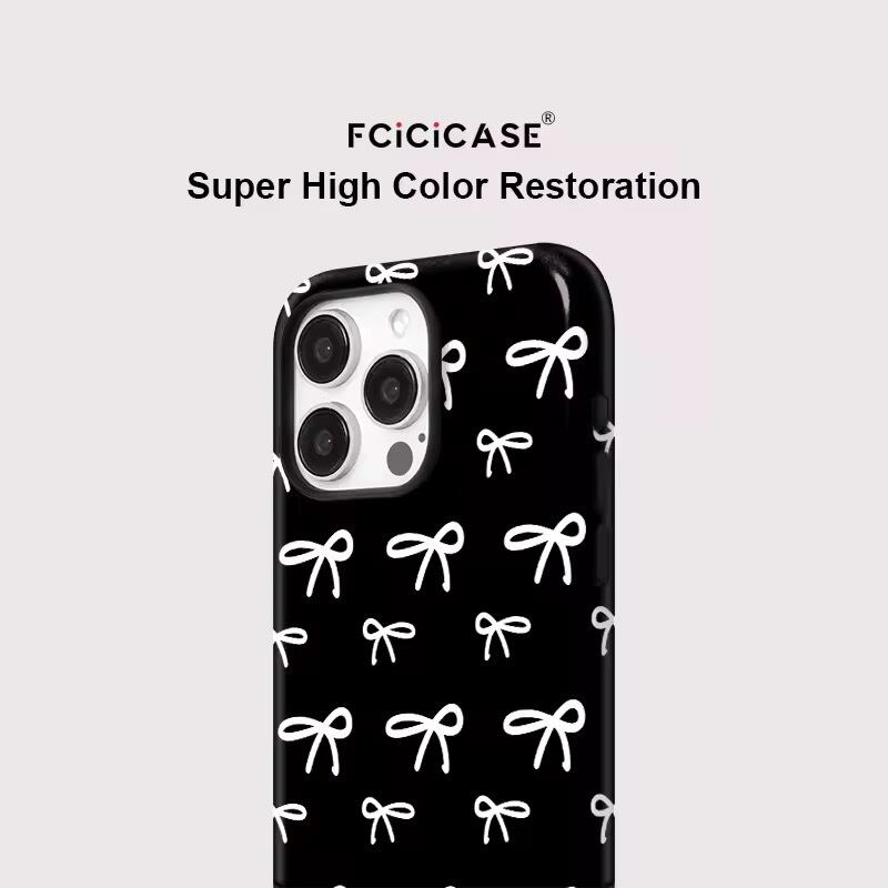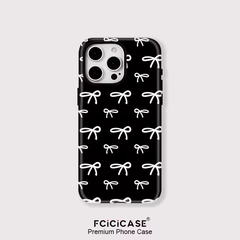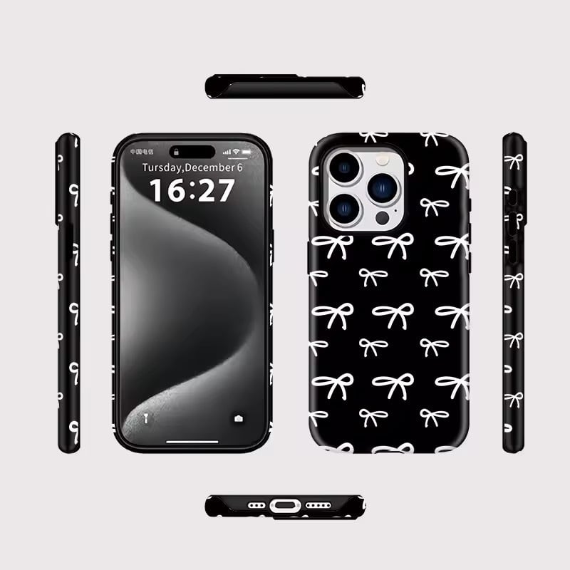 ブラックベースに、白いリボンを散りばめたシンプルガーリーなデザイン。